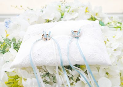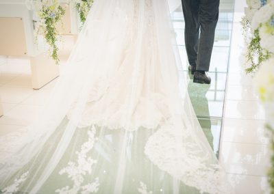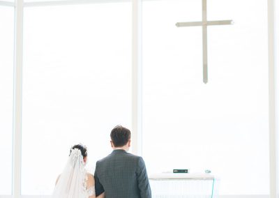 婚禮當(dāng)天早上,我們需要7點(diǎn)就去報(bào)到。那時(shí)帶著興奮又緊張的心情,從飯店步行大約3分鐘來到教堂。那時(shí)天還未亮,教堂打著燈,顯得格外神秘與美麗。雖然當(dāng)日的天氣有些陰沉,沒有像照片中那樣的蔚藍(lán)天空,但厚重的云層卻帶來了一種朦朧美。